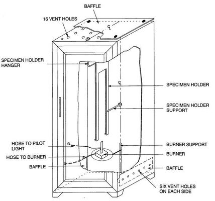 Bu aparat, kumaşlarda, çok katmanlı kumaşlarda, önlüklerde kullanılan kumaş gruplarında ve kamp tentatlarında alev direncini değerlendirmek için kullanılır.